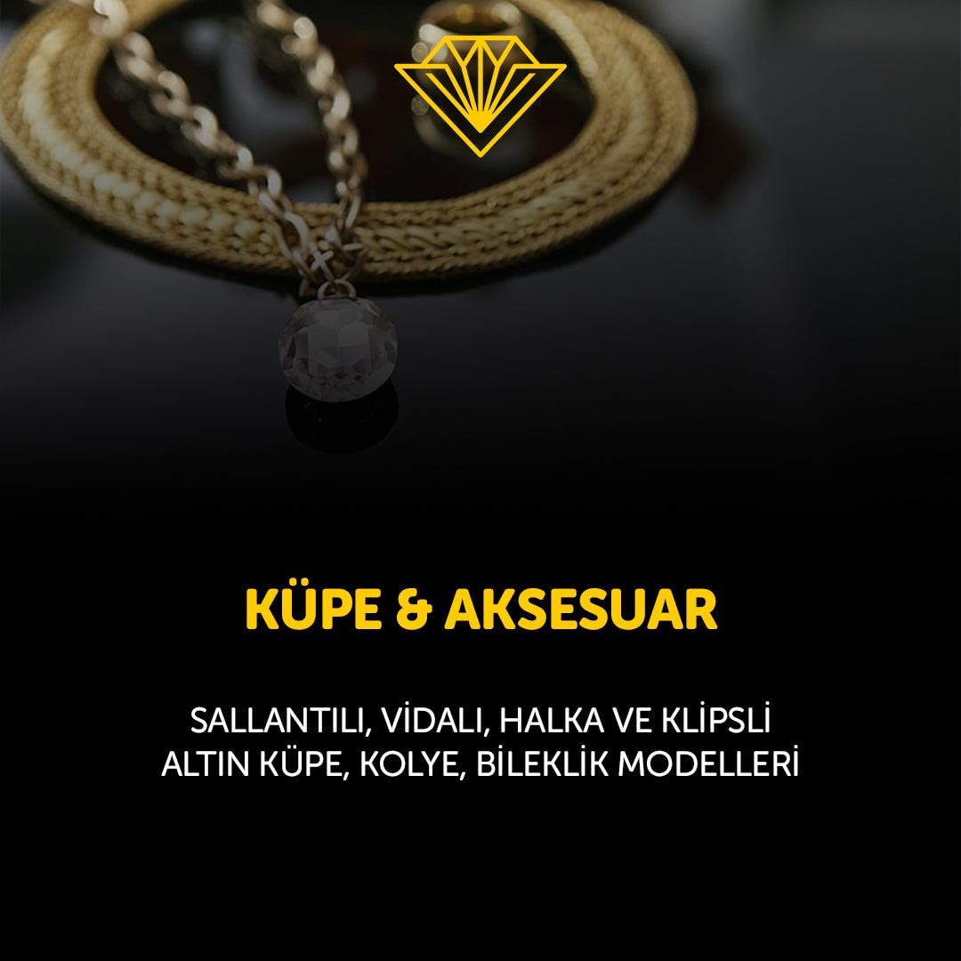 22 ayar fantezi ürünlerde, hint takımlar, hasır takımlar, yüzük, küpe, kolye, zincir, bileklik, bilezik, set ve üçlü set ile her zaman güncelliğimizi korumaktayız. 14 ayar ürünler, ülkemizin önde gelen markaların yanı sıra, diğer markaların da en güncel modellerinden oluşmakta ve her türlü ürün çeşidine cevap verebilmekteyiz.